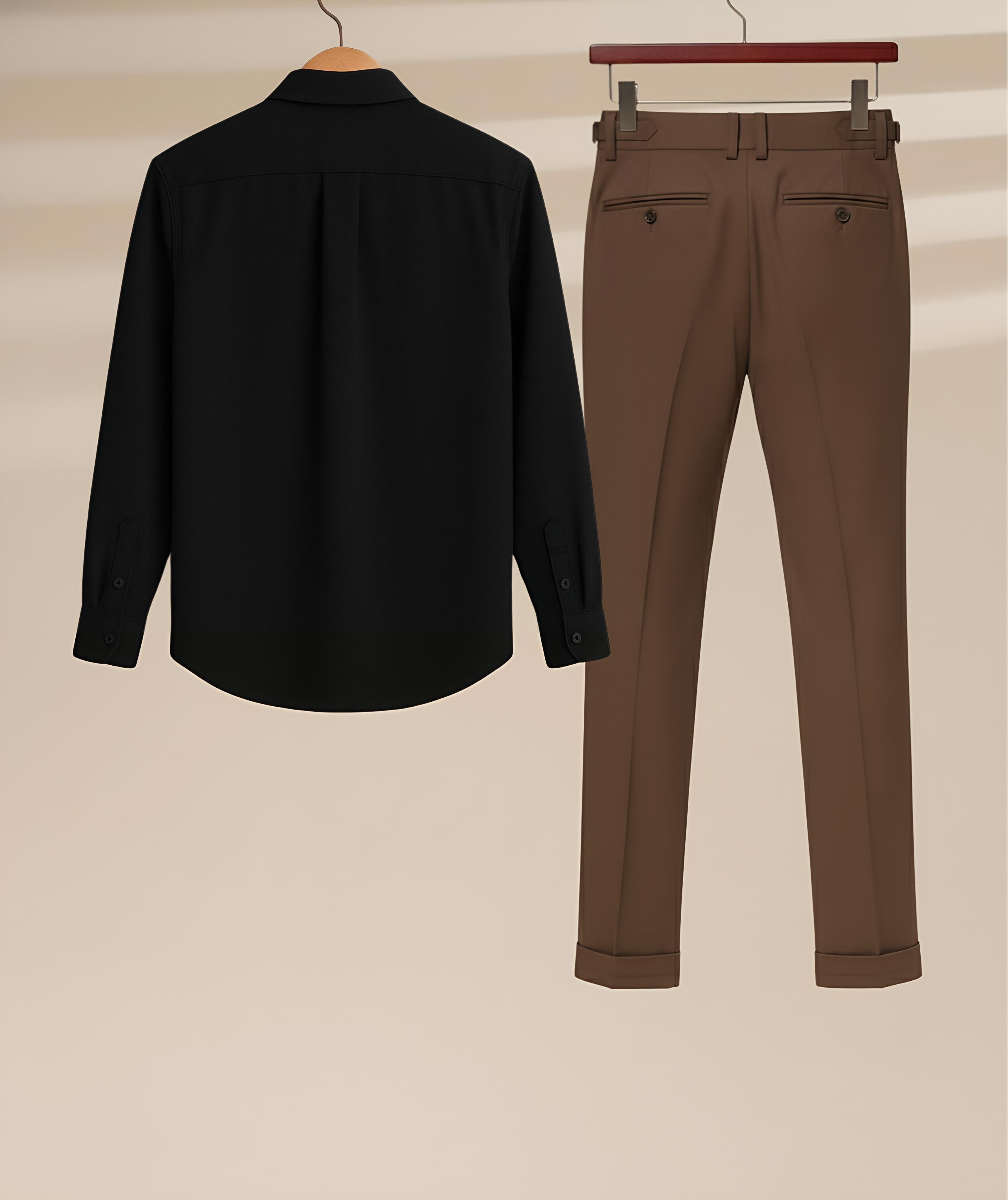 Black Brown Black Shirt & Brown Pant Formal Set